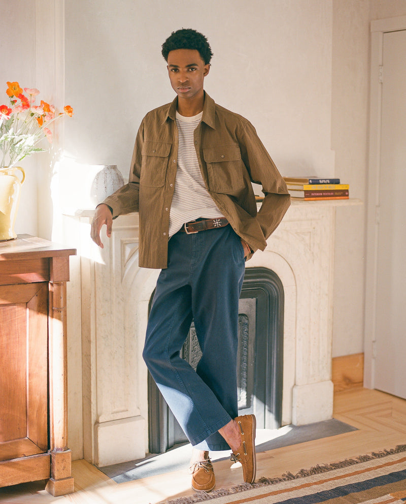 A tactile, utility‑inspired piece with a modern edge. Made of 88% cotton and 12% nylon, it features two top‑entry snap chest pockets with side zips and custom Corridor snaps. The crinkled fabric adds texture and dimension.