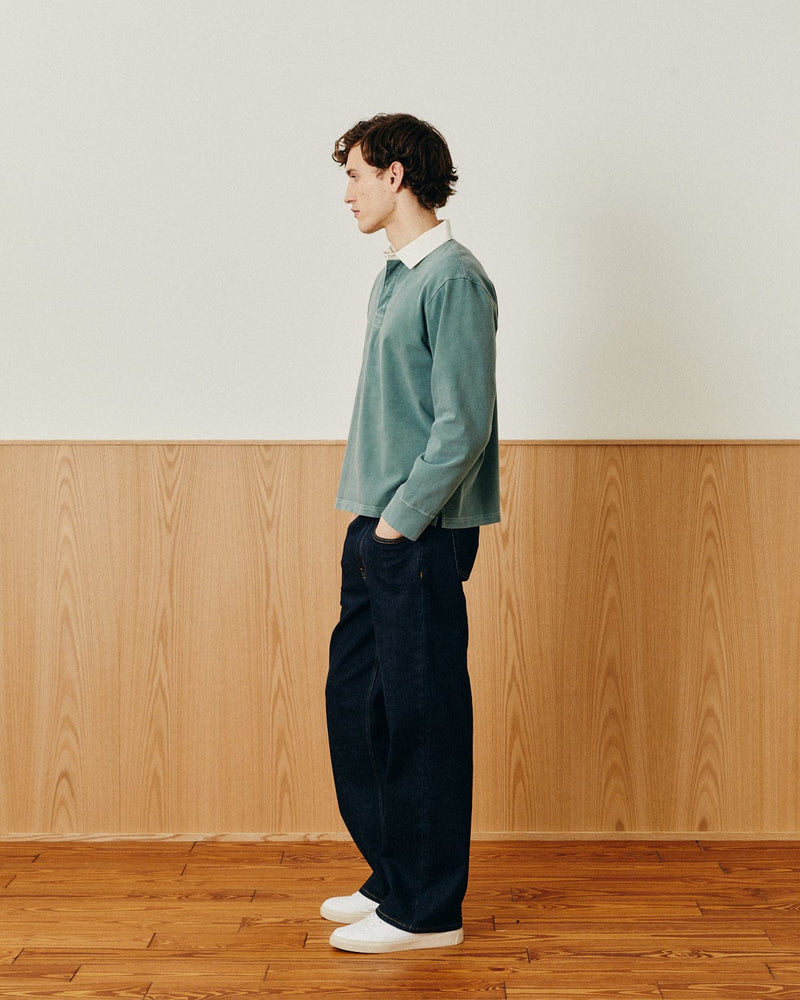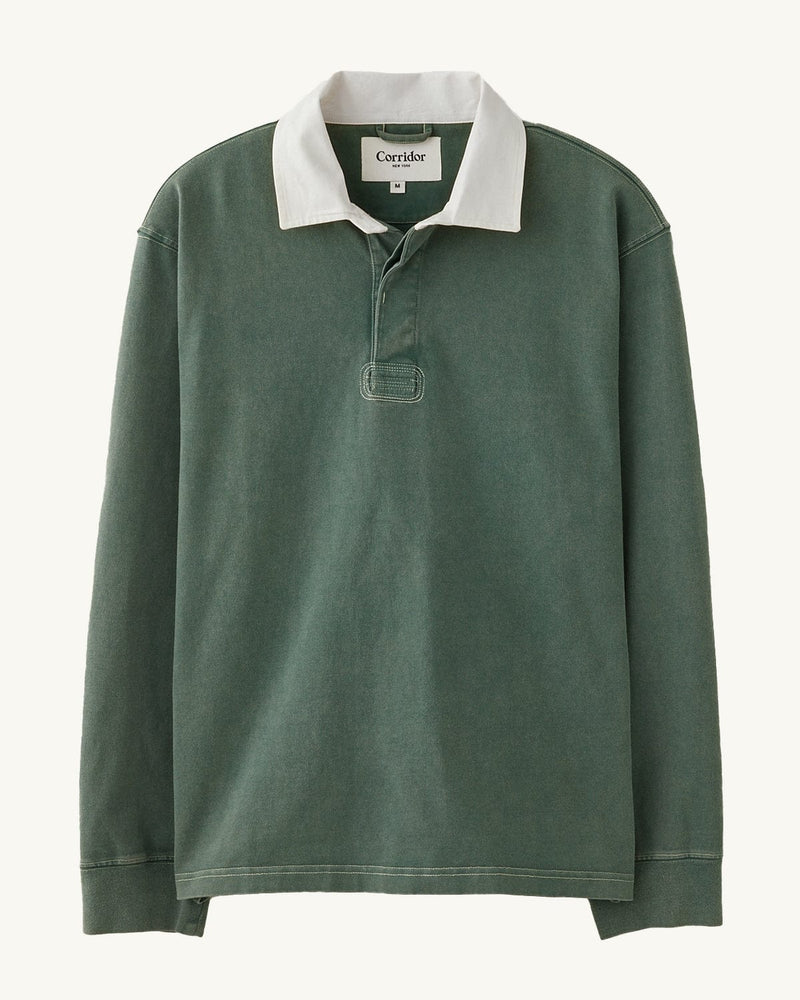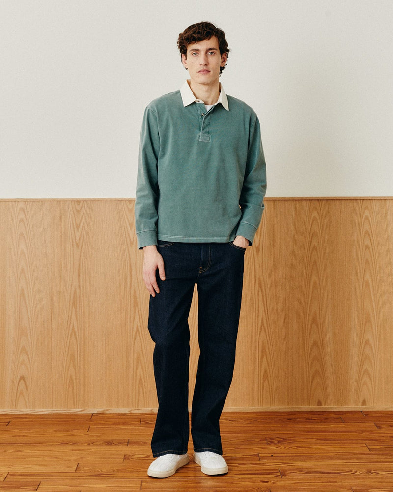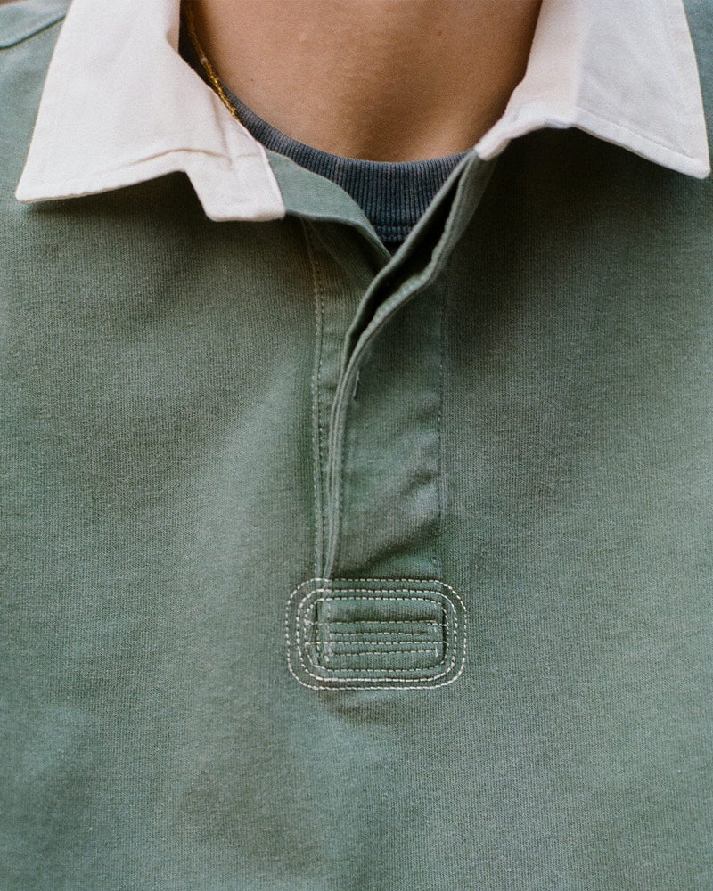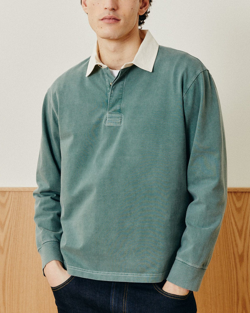 A classic long-sleeve rugby in 100% cotton with a vintage wash for lived-in softness. Covered placket and subtle contrast stitching provide a contemporary feel.
