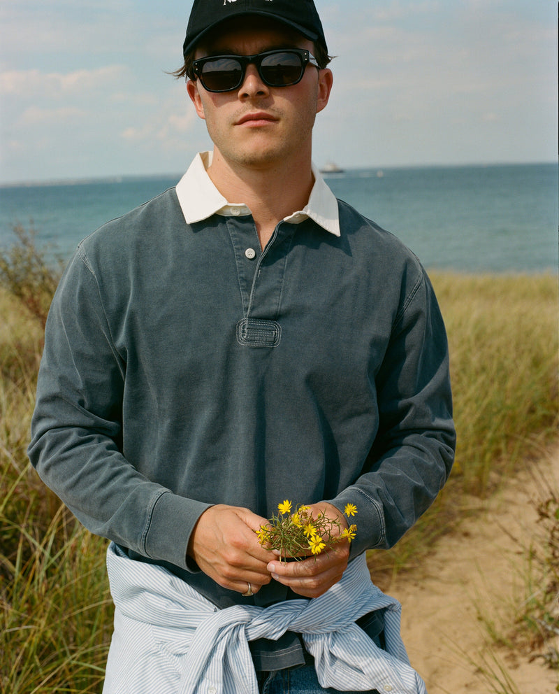 A classic long-sleeve rugby in 100% cotton with a vintage wash for lived-in softness. Covered placket and subtle contrast stitching provide a contemporary feel.